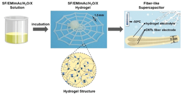 Wang, W. Q.; Liu, Y. Z.; Wang, S. Q.; Fu, X. M.; Zhao, T. C.; Chen, X.; Shao, Z. Z. Physically Cross-Linked Silk Fibroin-Based Tough Hydrogel Electrolyte with Exceptional Water Retention and Freezing Tolerance. Acs Appl Mater Inter 2020, 12 (22), 25353-25362.